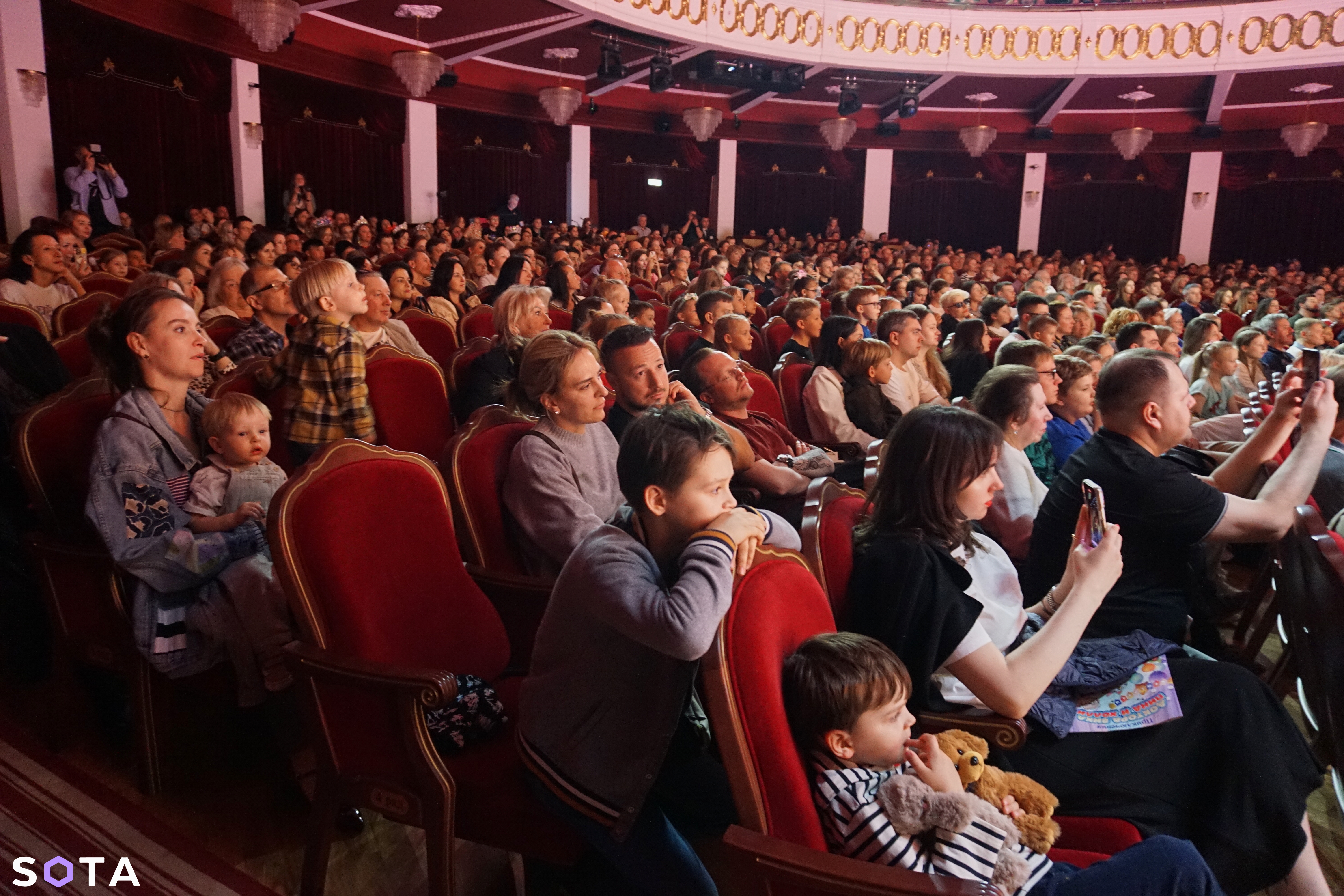 А еще на сцене, словно по подиуму, продефилировал, целый конкурс красоты. Судя по всему, как и этот концерт, сборный – среди дефилирующих и размахивающих флажками-триколорами мы разглядели милых дам в увесистых из-за россыпи камушков коронах и с лентами, на которых напечатали: «Миссис Москва» (с такими шли сразу несколько девушек), «Миссис искренность», «Миссис нежность», «Миссис грация», «Миссис очарование», «Леди совершенство», «Mrs. Russia», «Mrs. Russia Globe», «Королева поэзии», «Королева спорта России», «Королева фонда «Планета женщин», «Beauty королева страны», «Гранд-королева России», а также просто – «Королева планеты». Но не она была королевой среди этих избранных королев красоты, а другая – невестка Куклачева-старшего, жена Дмитрия Куклачева, 43-летняя Марина Куклачева, что «обошла более 20 конкуренток и завоевала заветную корону «Миссис Москва – 2025». За это ее чествовали отдельно, после того, как все прочие красавицы скрылись за кулисами. Заодно наградили букетами и подарками от спонсоров и всех остальных женщин прошлогоднего юбиляра – его жену Елену, дочь Екатерину (она, как и младший сын Кулачева, Владимир, тоже нещадно гоняли котов на этом шоу), и внучку Анастасию. И все это под размахивание флагом России.