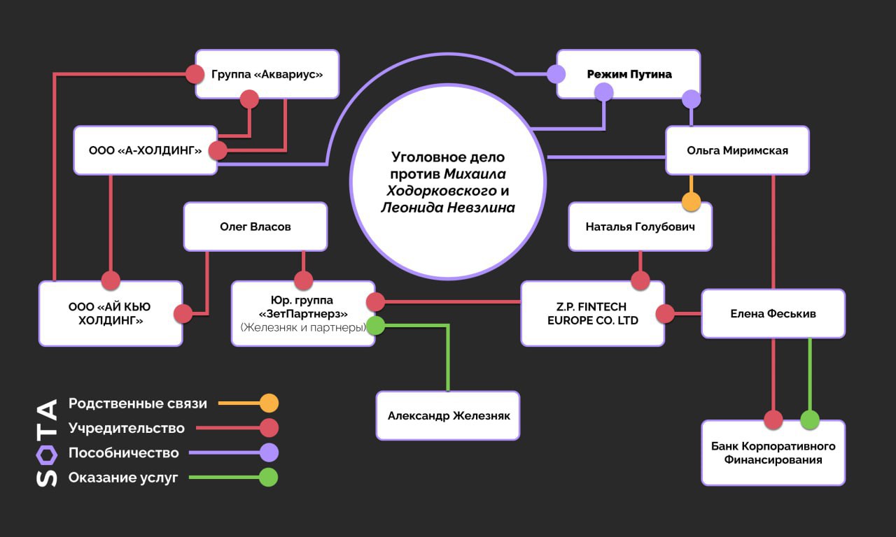 Иллюстрация: схема из расследования «Соты» о связях Миримской и Железняка, в которых не смогла разобраться Мария Певчих