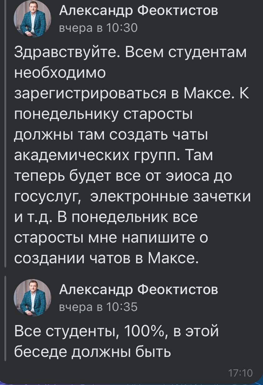 Информацию о принудительном подключении к национальному мессенджеру MAX в вузах подтвердили «Соте» в Пензенском государственном университете (см. скриншот).
