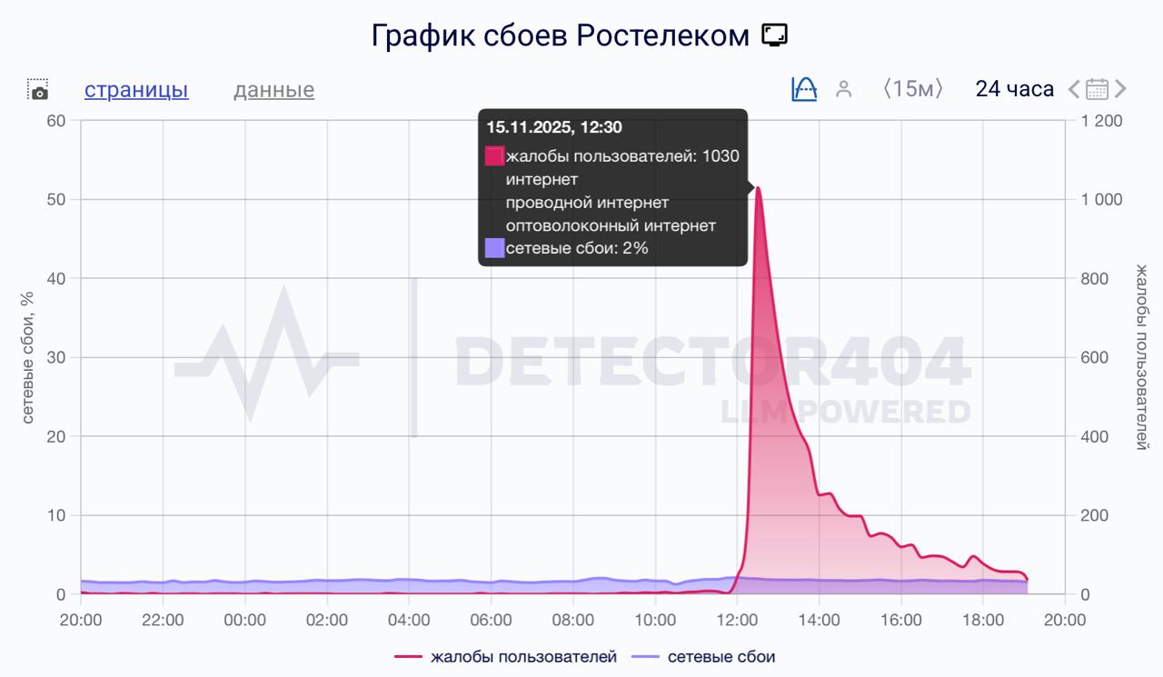 Отключение подтверждают сотни пользователей в соцсетях и на сервисах мониторинга. По данным Downdetector, жалобы поступают в основном из Ярославской, Ивановской, Владимирской и Костромской областей, а также из ЯНАО и частично из Краснодарского края. Пользователи сообщают, что проводной интернет, мобильная передача данных и IPTV у «Ростелекома» недоступны, а связаться с поддержкой удаётся не всем.