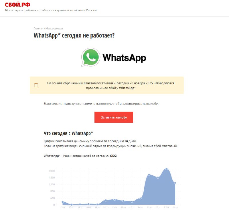 Это уже второй крупный сбой WhatsApp на этой неделе: аналогичная волна жалоб фиксировалась во вторник, когда проблемы также затронули Москву, Свердловскую и Новосибирскую области. На фоне повторяющихся неполадок в среду член комитета Госдумы по информационной политике Антон Немкин заявил, что блокировка WhatsApp в России рано или поздно случится: