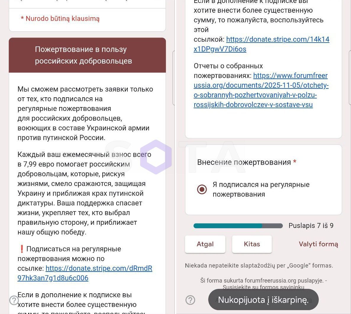 В среду, 3 декабря, «Форум» провел рассылку приглашений на свое первое после полуторалетнего перерыва собрание – 16 и 17 февраля в Вильнюсе. Обязательным условием приглашения для постоянных участников была указана подписка в размере 7,99 евро «на регулярные пожертвования для российских добровольцев, воюющих в составе Украинской армии против путинской России».