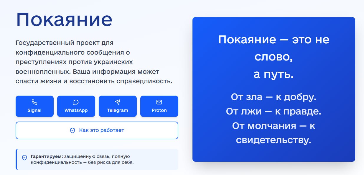 Проект реализуется Координационным штабом Украины по вопросам обращения с военнопленными и обращается в первую очередь к «сотрудникам правоохранительной и судебной системы РФ, которые сохранили свою честь».