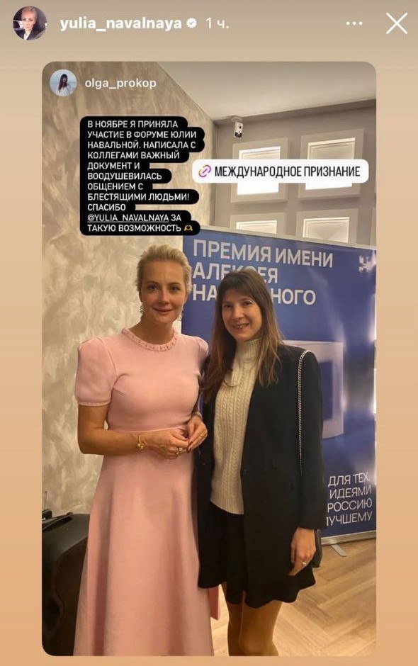 Более того, сториз Прокопьевой с «Форума» было опубликовано в инстаграме Навальной (см. фото).