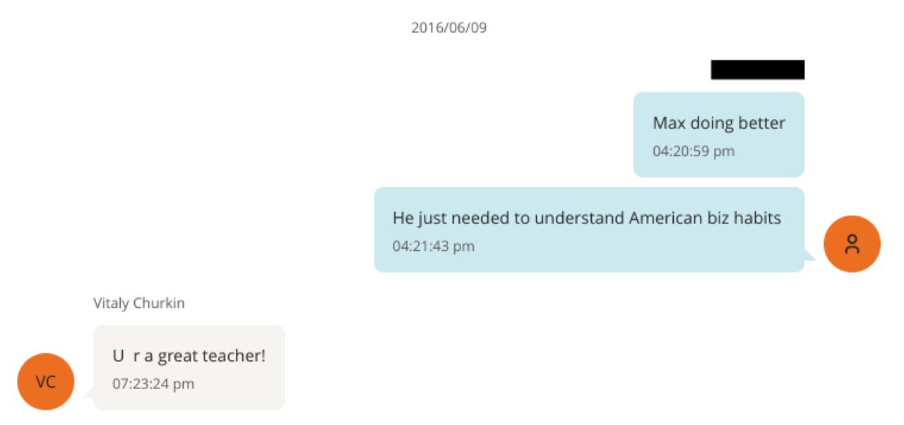 Со стороны Чуркина звучит благодарность за участие в судьбе сына. В одном из сообщений дипломат благодарит Эпштейна за время, уделённое Максиму, а в другом пишет ему, что тот является «отличным учителем», имея в виду помощь сыну. Отдельно Эпштейн комментирует адаптацию Максима, отмечая, что ему просто нужно было понять американские бизнес-привычки. Отметим, что о нынешнем месте работы Чуркина-младшего информации в Сети нет, в 2024 году он присутствовал на открытии бюста своему отцу в Москве.