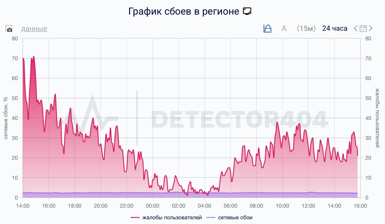 Об этом свидетельствуют данные сервиса Downdetector. По информации сервисов мониторинга, жалобы поступают на работу операторов T2, МТС, «Мегафон» и «Билайн».