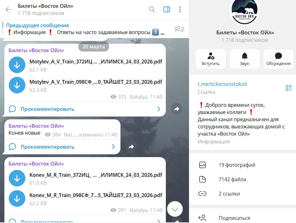 В таком режиме канал для сотрудников проекта «Роснефти» «Восток Ойл» с более чем 1700 подписчиками функционирует с конца февраля 2025 года.