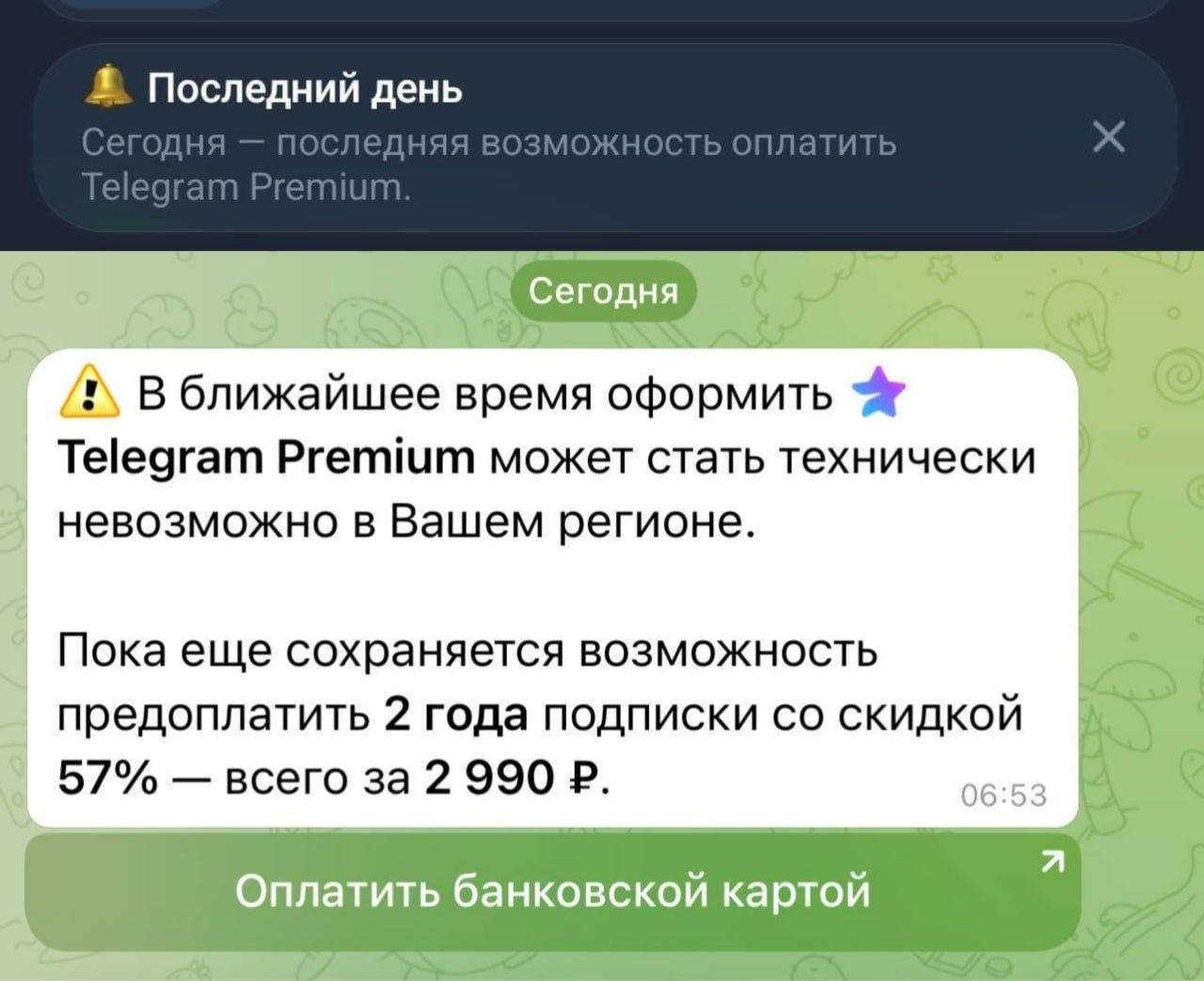 Пользователи Telegram в России получили уведомления о том, что в ближайшее время в регионе может пропасть возможность оплачивать подписку Premium, но они могут купить её со скидкой — сразу на два года.