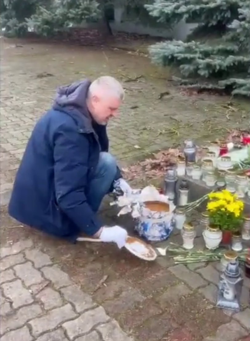 Барткявичюс с фекалиями на мемориале. Скриншот из видео