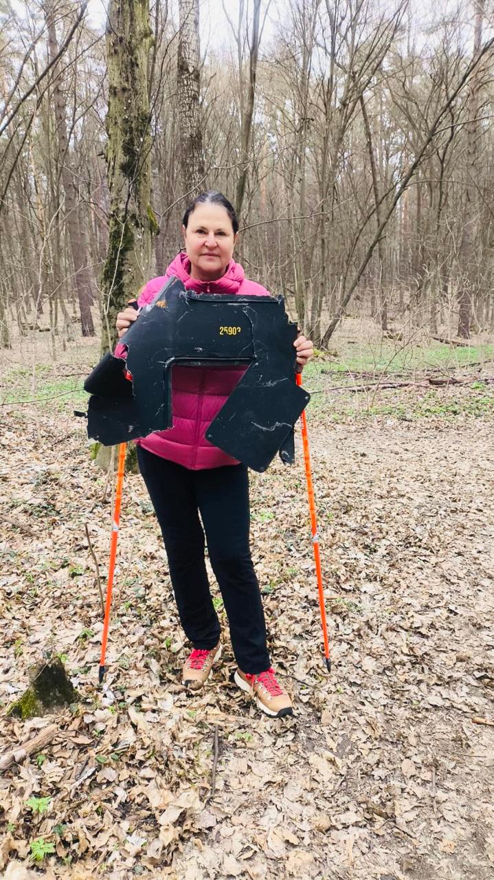 Катарина Матернова обнаружила фрагмент российского беспилотника во время прогулки по лесу в Киеве.