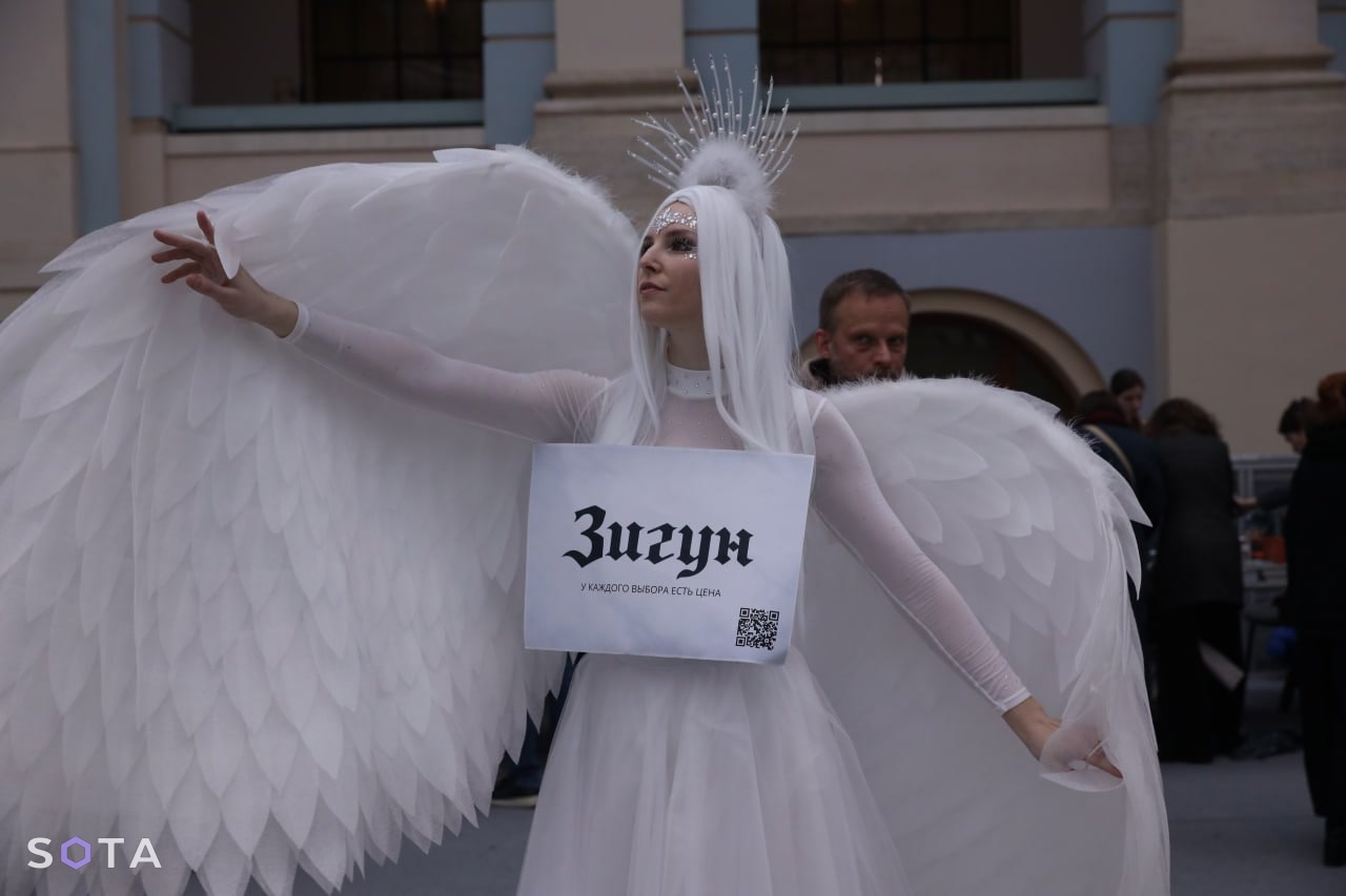 Девушка на фото рекламирует книгу «Зигун» авторства Дмитрия Кондратенко – президента Национальной ассоциации здравоохранения, помощника зампредседа Комитета Госдумы по охране здоровья и советника президента Ассоциации малых и средних городов России.