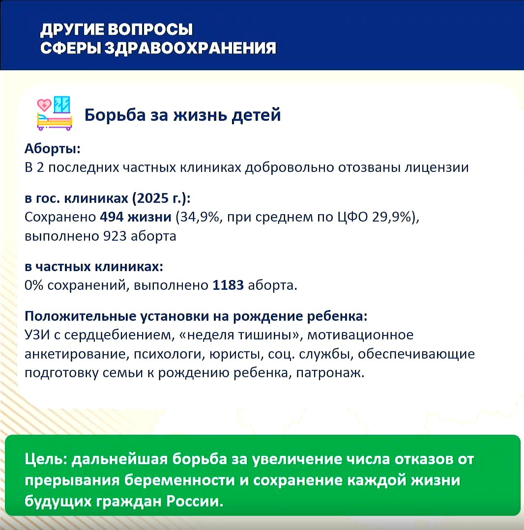 Власти Курской области на оперативном совещании отчитались о результатах кампании по «профилактике абортов»: по словам губернатора Александра Хинштейна, за последний год в государственных клиниках от искусственного прерывания беременности удалось отговорить 494 женщин.