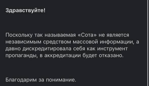 В случае «Соты» ситуация усугубилась тем, что от нашего издания был аккредитован сам с 2021 года являющийся беженцем в Нидерландах Олег Хомутинников: этот статус был указан в его заявке.